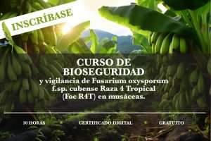Por esta razón en el marco del proyecto ALER4TA “Fortalecimiento de capacidades y bioseguridad en Ecuador, Colombia, Bolivia y Perú, frente a Fusarium oxysporum Raza 4 Tropical (Foc R4T) en musáceas”, la GIZ y el IICA buscan contribuir y aumentar la divulgación de herramientas de capacitación disponibles en línea, relacionados con las medidas de bioseguridad establecidas para evitar, vigilar y controlar Fusarium oxysporum Foc R4T.